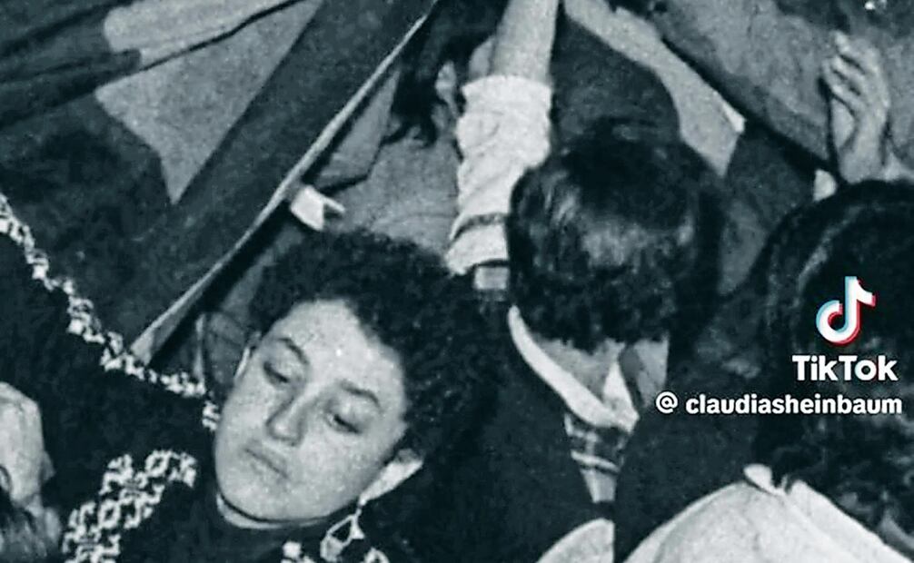El 1 de octubre de 1991 el diario The Stanford Daily publicaba una imagen de la joven Claudia manifestándose contra la visita del presidente Carlos Salinas de Gortari a la Universidad de Berkeley, donde llevaba a cabo su estancia; llevaba una pancarta con la leyenda “Fair trade and democracy now!”, “¡Comercio justo y democracia ahora!”.