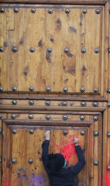 El 8 de noviembre del 2014, tras una marcha en protesta por la desaparición de los 43 estudiantes de Ayotzinapa , un grupo de manifestantes hicieron pintas, lanzaron bombas molotov, golpearon con vallas e incendiaron la puerta de Palacio Nacional.