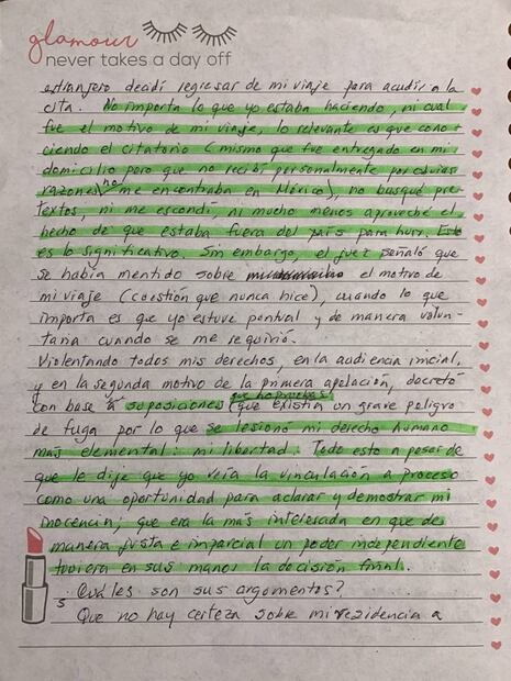 En la cuenta de Twitter de Robles Berlanga se compartió un texto de siete páginas sobre lo que dijo en su audiencia. Aquí te dejamos la carta escrita de su puño y letra.