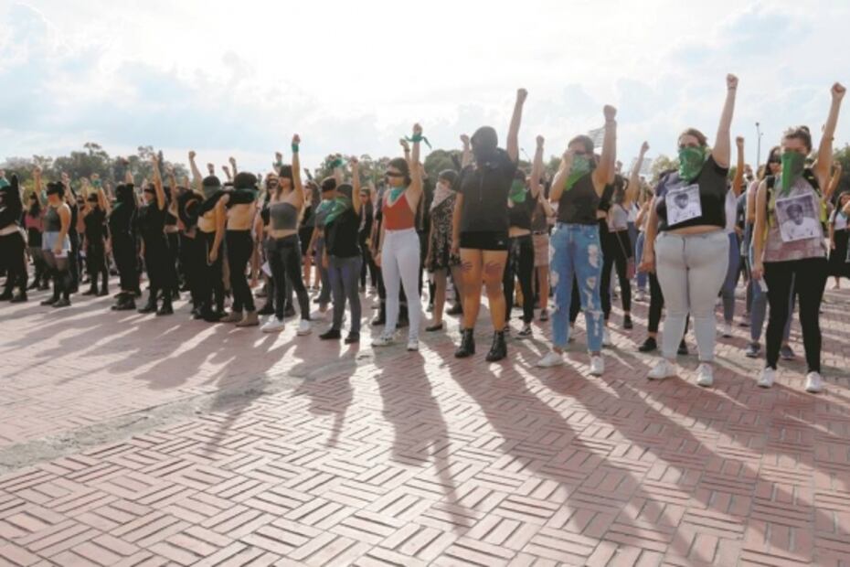 Poco a poco fueron afinando detalles desde el kiosko: “Compañeras, hay que iniciar con el puño izquierdo y al lado izquierdo, podemos omitir un conector para que nos alcance el tiempo, al finalizar hagamos un minuto de silencio por todas las muertas. ¡No! ¡Ya basta de silencio, debemos pedir eso, no más silencio”, eran algunas de las diferencias que unificaron en la Alameda Central.