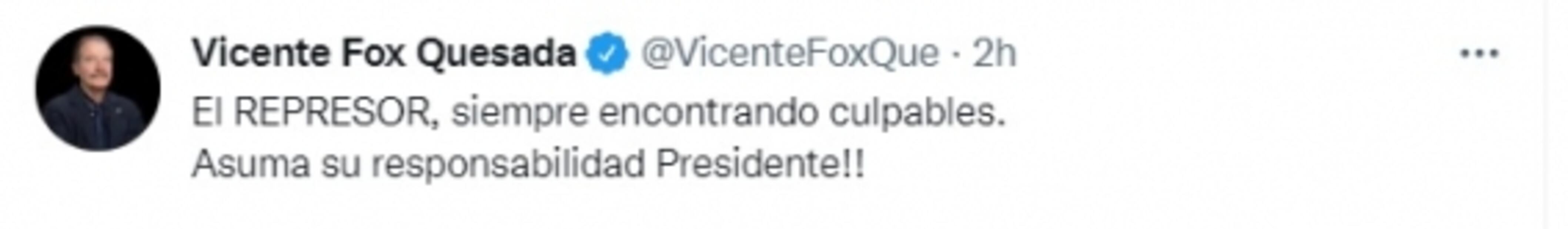 Al respecto, el expresidente Fox dijo que “el represor” López Obrador siempre está encontrando culpables.