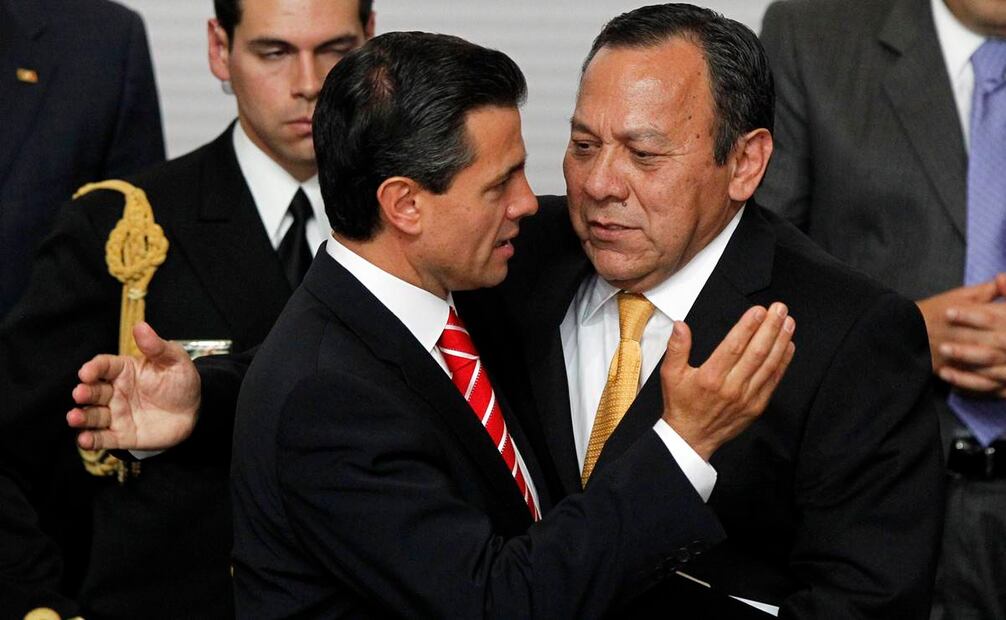 Jesús Zambrano (der.), presidente del PRD entre 2011 y 2005, abraza al presidente de México Enrique Peña Nieto durante la presentación de una reforma a la Ley de Telecomunicaciones. 2013. Foto: REUTERS/Edgar Garrido.