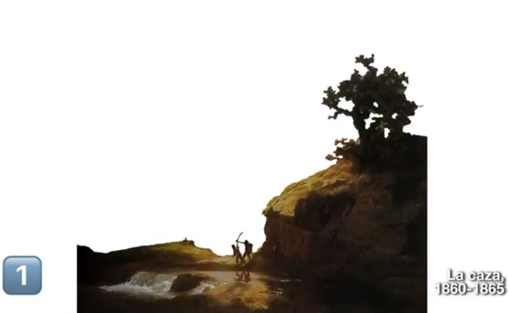 Para explicar esto, BEmiliano tomó como ejemplo la pintura “La Caza”, también de Velasco, y la dividió en tres planos. Es decir, propone observar los cuadros tomando en cuenta la” cercanía” y las proporciones de los elementos retratados.