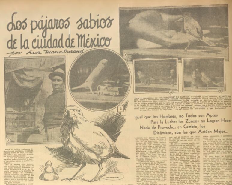 En 1942 Luz María Durand escribió sobre los pajaritos entrenados para leer la suerte o bailar con trajecitos frac en las ferias de pueblo. “¿Recuerda usted con especial cariño a alguno de sus pájaros?", preguntó la reportera a un entrenador.