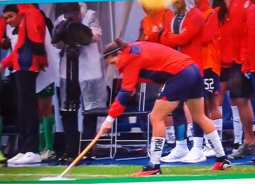 Licha Cervantes ayudó a sacar el agua de la cancha en la Noria tras intensa lluvia en la CDMX