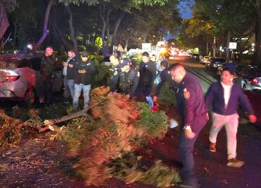 Agentes de la Secretaría de Seguridad Ciudadana destaparon coladeras con el fin de reanudar la circulación de los autos