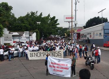 Alumnos y trabajadores de la Universidad Autónoma de Morelos, encabezados por su rector Gustavo Urquiza, marchan hacia el zócalo de Cuernavaca para pedir la intervención de las autoridades federales, estatales y municipales para rescatar a la máxima casa de estudios