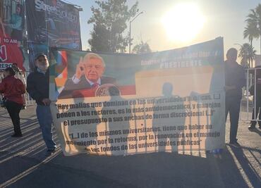 En el lugar de la reunión le entregaron peticiones y denuncias, entre ellas de los integrantes Académicos de la Universidad de Sonora y trabajadores despedidos de una empresa de lácteos