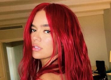 Karol G lució un bikini triangular de fresas que combinó con su pelo rojo
