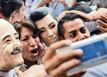 El candidato no desaprovecha la oportunidad para retratarse; incluso tarda más en salir de los eventos que en decir sus discursos