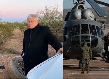 Mientras que una de las camionetas donde viajaba el presidente López Obrador era reparada por una ponchadura; secretarios de estado arribaron a la comunidad La Mora en helicópteros de la Armada y Fuerza Aérea
