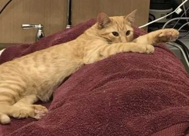 Ron, el gato callejero que da ánimos a perros y michis pacientes de hospital veterinario