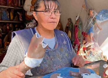María de los Ángeles Soriano y sus hijos restauran figuras religiosas en Xochimilco desde hace 35 años; anhela que sus nietos continúen con el legado familiar