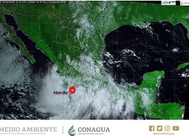El SMN prevé que la depresión tropical “Narda” se intensifique hoy nuevamente a tormenta tropical y siga avanzando paralela a las costas nayaritas y de Sinaloa
