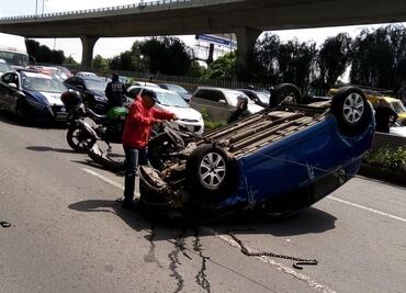 El accidente también provocó la volcadura de un auto compacto, por lo que en la zona hay tránsito lento
