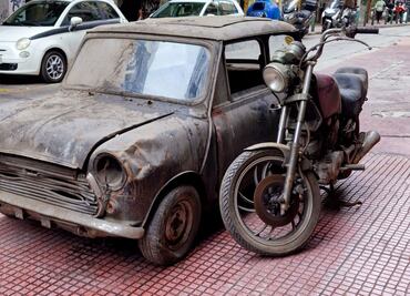 Después de 30 años, el Mini y la moto finalmente ven la luz del Sol, aunque sea prácticamente imposible restaurarlos
