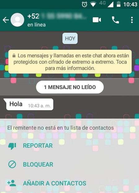 Pero, si todo lo anterior te parece un trabajo extra, recuerda que siempre que llega a WhatsApp un mensaje de un número que no está en tus contactos, tienes la opción de Reportar o Bloquear.