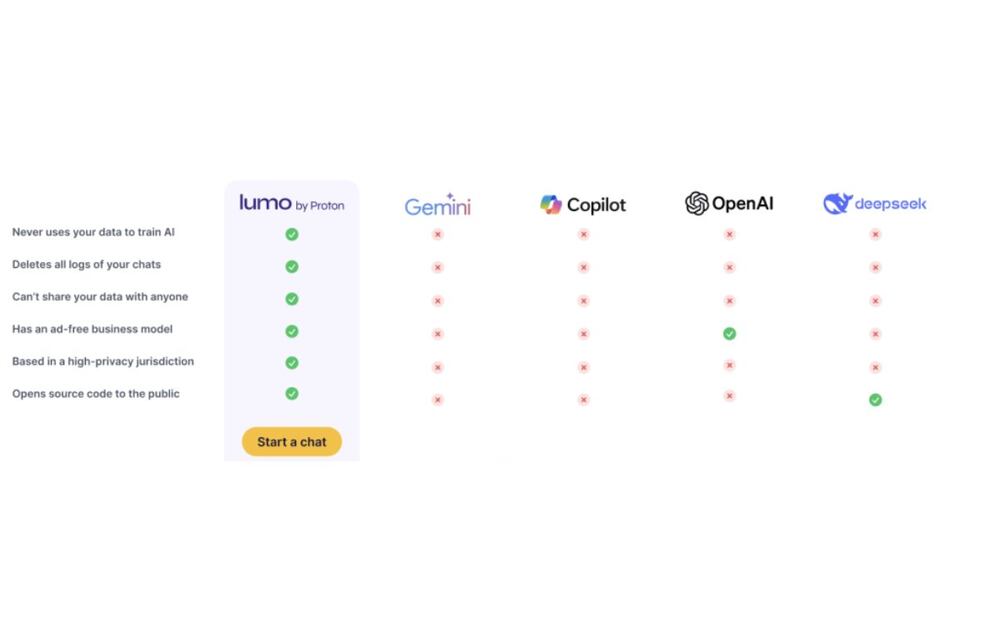 Lumo podrá resumir documentos, crear código, escribir correos y más. Con su cifrado de "acceso cero", evitará que terceros accedan a la información del usuario, incluyendo a Proton. Con ello se garantiza que tu información no será compartida con anunciantes o gobiernos, además que no se usará para capacitar a otros modelos de lenguaje de gran tamaño.