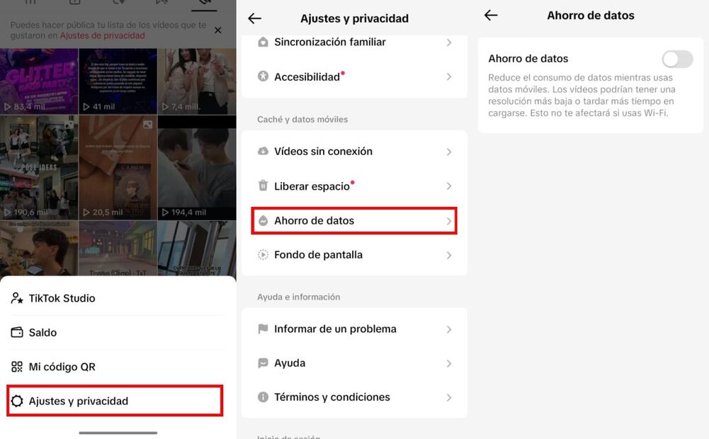 También puedes activar el "Ahorro de datos" desde la configuración, con lo cual se reduce la calidad de los videos y se silencia la reproducción de los feeds.