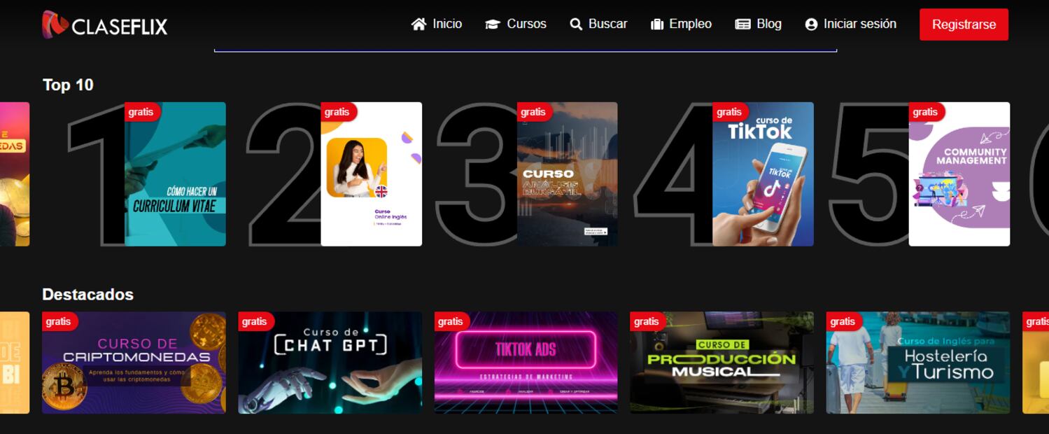 Claseflix es un sitio web que ofrece cursos online gratuitos, pero tiene una peculiaridad. Al entrar a su portal, no podrás evitar recordar a Netflix, pues su apariencia y diseño visual es muy similar.
