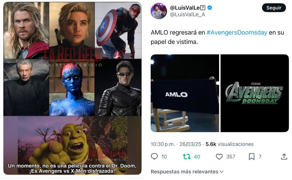 Aunado a ello, usuarios de la red social sugirieron algunos nombres para que aparezcan en la quinta película de los Avengers, como el expresidente Andrés Manuel López Obrador, Duolingo y Karla Sofía Gascón.