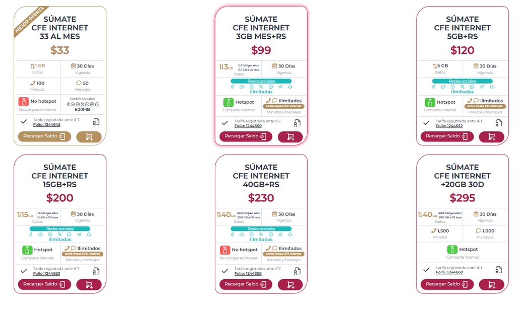 La Comisión Federal de Electricidad (CFE) cuenta con un servicio de telefonía móvil donde te ofrece paquetes de Internet a un precio accesible.