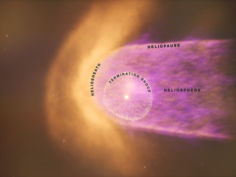 La NASA explica que la heliosfera es una burbuja gigante creada por el Sol que protege a todos los planetas dentro del Sistema Solar.