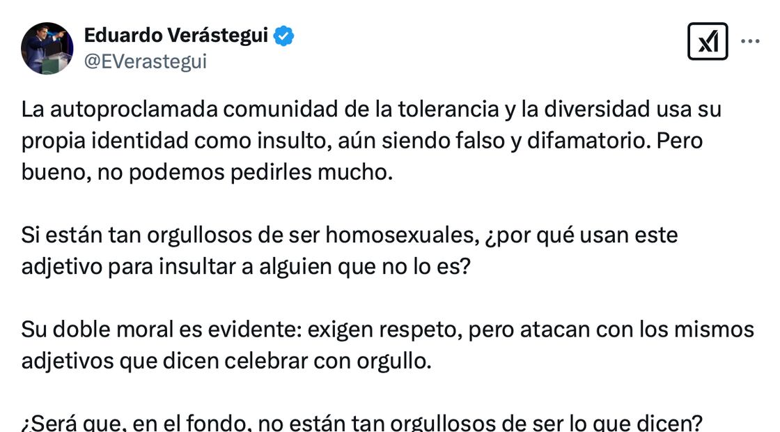 También se refirió a lo que consideró una doble moral dentro de la comunidad LGBT+, señalando que este grupo exige respeto, pero a menudo utiliza los mismos términos despectivos que afirman celebrar con orgullo; por lo que con un tono desafiante, concluyó su mensaje preguntándose si, en el fondo, las personas de la comunidad realmente estaban tan orgullosas de ser lo que dicen ser.