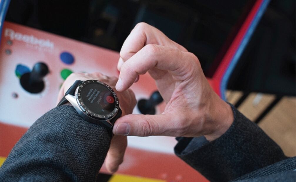 Una ligera vibración del reloj te alerta de un nuevo mensaje. En realidad, toda la organización de esta arquitectura comunicativa se puede personalizar en cada detalle. Por cierto, la pantalla también se puede usar como pequeño foco de luz al igual que los celulares traen su linterna. La corona central abre también un menú por el que navegas con la corona. Los dos pulsadores, en cambio, trabajan de modo tradicional para el cronógrafo cuando haces alguna actividad física.