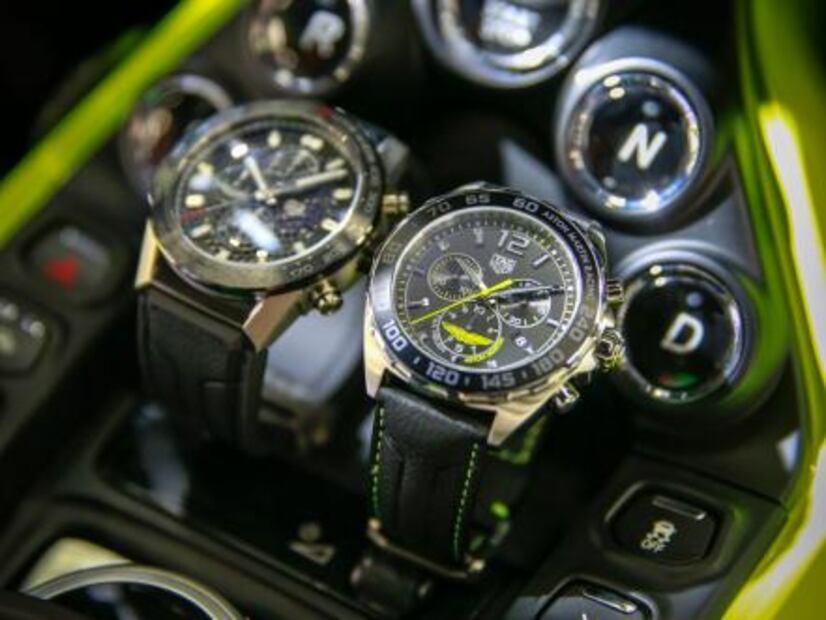 De nuevo la alianza se selló con el lanzamiento de dos relojes: el TAG Heuer Carrera Heuer 01 Aston Martin mecánico y el TAG Heuer Formula 1 Aston Martin de cuarzo. Ambos cronógrafos son de acero (45 y 43 mm) y llevan el logotipo de la armadora.