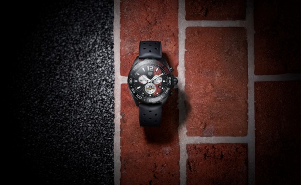 TAG Heuer Fórmula 1 Indy 500 Edición 2020 es un cronógrafo de 43 mm con detalles llamativos en rojo y texturizada con ladrillos en la esfera como tributo al hipódromo Indy. Un expreso diseño que alude a los millones de ladrillos que pavimentaron el circuito como medida de seguridad —el circuito de Indianapolis Motor Speedway es conocido como “The Brickyard”—.