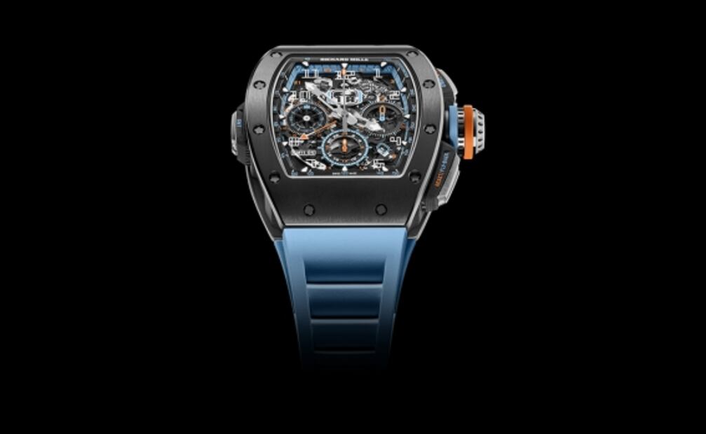 RM 11-05 es una pieza de 50 mm con tres subesferas y dos pulsadores para la función crono flyback. Presenta un gran visualizador de la fecha y la indicación del mes entre las 4 y 5 horas. La aguja GMT, rellena de Superluminova, con su destacada punta se ajusta gracias a un discreto pulsador ubicado a las 9 horas. Un portento mecánico con 50 horas de reserva de marcha.