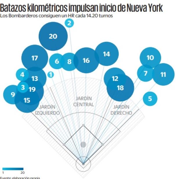 Conocidos desde 1936 como los Bombarderos del Bronx , los neoyorquinos son fieles a su sobrenombre al ser el equipo que menos turnos al bat consume (14.20) para conectar un vuelacercas. En la clasificación le siguen los Reds (18.39).