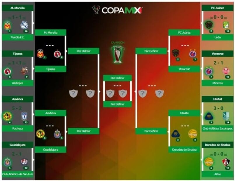 Con la victoria de Chivas, terminaron los octavos de Final de la Copa MX y quedarón definidos los enfrentamientos de los Cuartos de Final, donde destaca el partido entre las Águilas del América y las Chivas Rayadas del Guadalajara.