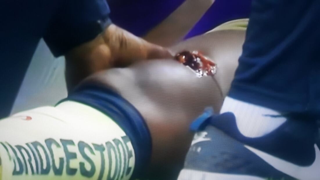 , para ser trasladado a un hospital, donde su padre Zizinho lo acompañó; su lugar en la cancha lo tomó el colombiano Andrés Ibargüen.