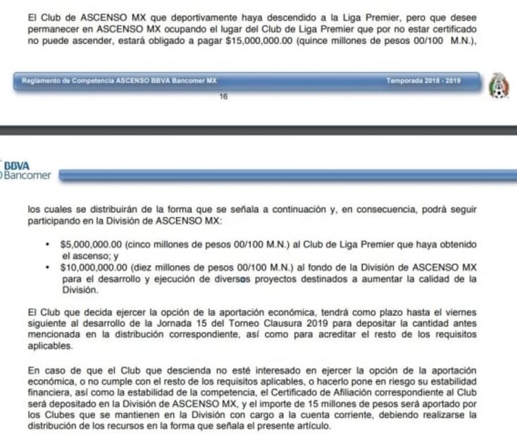 De acuerdo con el artículo 23 del reglamento del Ascenso MX , tendría como plazo hasta el viernes siguiente al desarrollado de la Jornada 15 del Clausura 2019 para depositar dicha cifra.